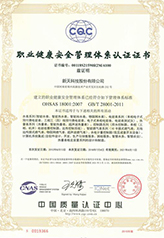 职业健康安全管理体系认证证书