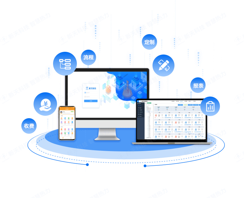 供热收费管理系统基于B/S架构,借助互联网技术,为供热企业打造围绕客户、面积、计量、费用管理为一体的综合信息化平台。对外打通微信、支付宝、银行、柜台等多条服务渠道,提供便捷交费和业务办理通道,以流程为驱动,创建一个闭环的业务信息化平台,对内联动财务及线下开关栓、稽查、清欠等工作,实现各部门业务协同;采用大数据挖掘技术,报表一查即有,为企业运营提供决策支持兼容各地区供热政策,为供热企业的生产和经营提供一站式解决方案,提升供热企业对外服务水平,提高客户服务质量和客户满意度。