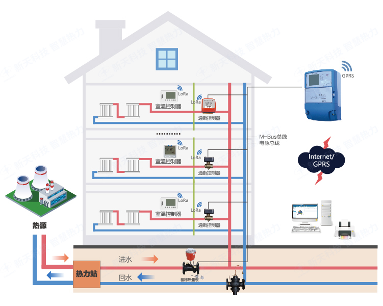 此系统可应用于新建小区住宅、办公楼宇、商业建筑等供热计量场所,具有性能可靠,维护简单等特点,实现"可计量、可调节、可控制"的要求,达到舒适、节能的目的。