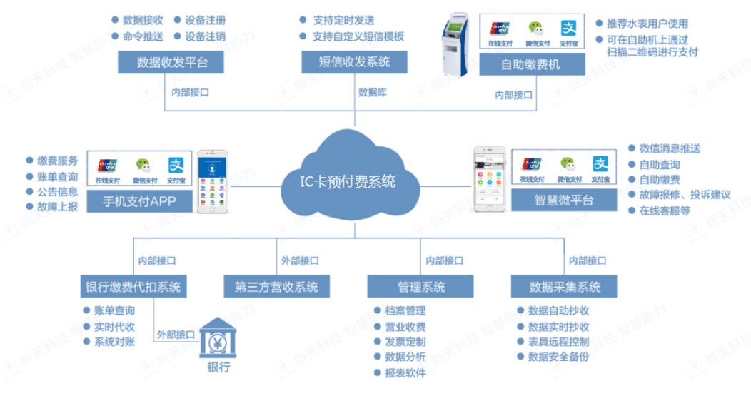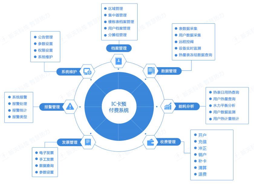 IC卡预付费系统是集远程数据采集和IC卡业务管理为一体的综合性管理系统,该系统主要包括档案管理、IC卡业务管理、数据采集、异常管理、统计分析等模块。实现IC卡充值、数据采集、数据监控、异常管理、能耗分析等功能。形成先缴费,后用热的良性循环模式,可解决传统收费模式效率低,也可避免恶意拖欠等问题,达到供热数据远程采集,收费智能管控。