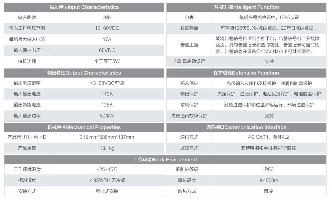 • 单块电池板最大功率追踪,效率高达99%